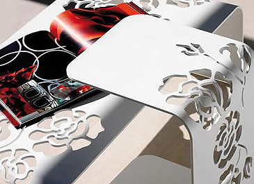 In fact, the designer Gianluigi Landoni, who worked on this occasion with the Italian company Vibieffe, succeeded in conveying the beauty of the rose without falling into an excess of romanticism, by taking from the rose only its voluptuous forms which he cut into furniture.