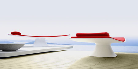 The slender shape with strong colors is such a blow of Chinese brush that invites to rest on it, under the sun.