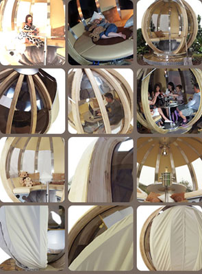 This contemporary sphere Lounger is a totally new concept in garden relaxation. It offers the unique qualities of being a dinning area, a lounging area and even a camping area !