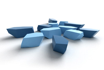 , this ice blocks are in fact coffee tables and small seats, and all of them have the same inclination, which enables to offer a great modularity.