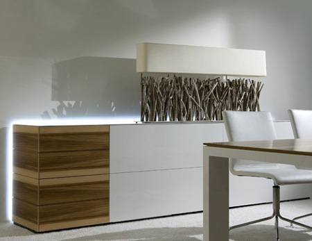 After the black elegance, it’s the radiance of whiteness and the nature that are honored on simple squared furniture. No extravagance, but something special that gives to the space an interesting look.